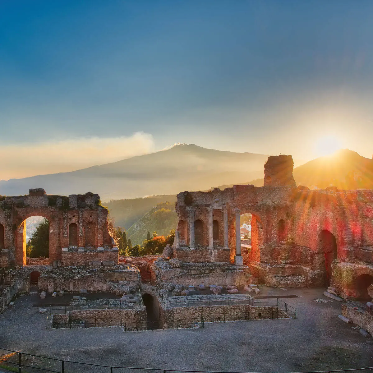 End your day at chic Taormina. Enjoy a romantic stroll through the town and end your day sipping a glass of local wine with a view of the Mount Etna. Magic!