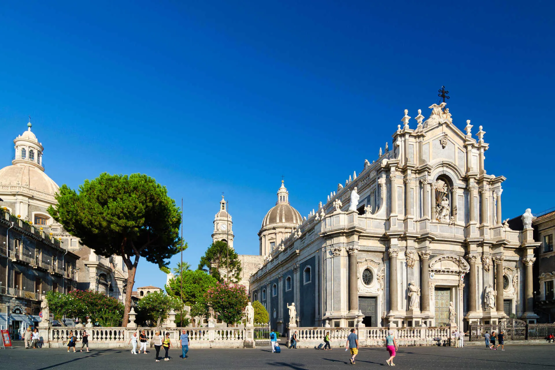 Vibrant and full of energy, Catania lies at the foot of Mount Etna, providing an exciting mix of history, culture, and culinary traditions. The heart of the city is its cathedral, dedicated to St. Agatha, the patron saint of Catania. This imposing cathedral, located in the picturesque Piazza del Duomo, is a jewel of Baroque architecture, showcasing the city's historical and artistic heritage. Strolling through Catania's streets reveals a succession of historical palaces, Baroque churches, and lively squares, telling the story of a city that has constantly been in motion.